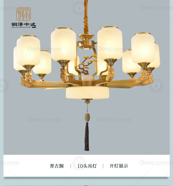 铜泽铜客厅压铸新中式吊灯 头数:10头 型号:70002劲松映月-10头
