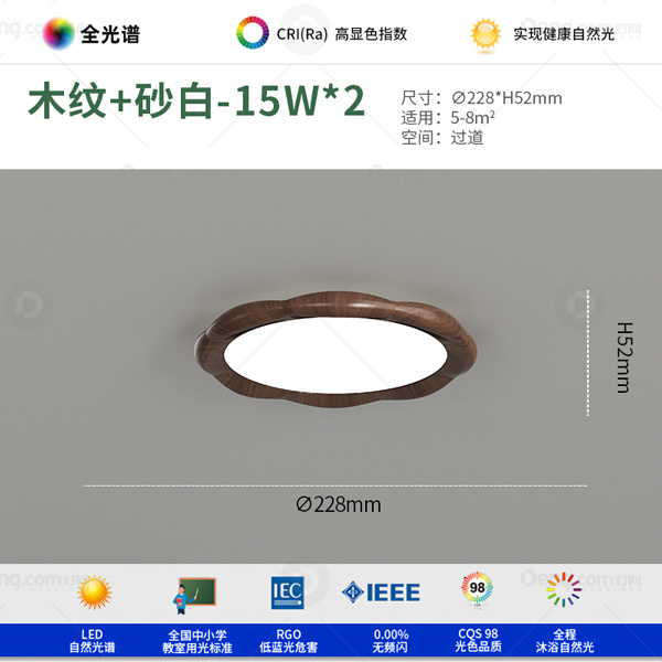 灯庭木艺走廊/过道/玄关喷漆磨砂现代简约过道灯 型号:WM8018-22木纹全光谱三色