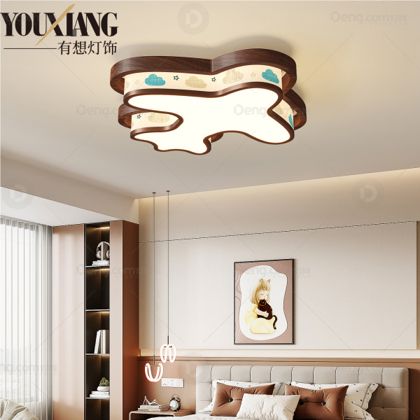 有想灯饰铁艺书房/卧室喷漆磨砂中古风吸顶灯 型号:QL-5004-胡桃木色-天猫