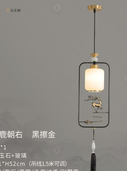 克美顿铜书房/卧室其他/other中式吊灯 头数:1头 型号:9925-小鹿朝右黑擦金