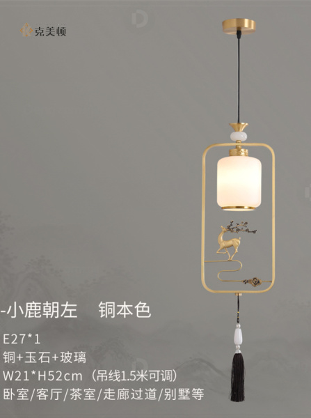 克美顿铜书房/卧室其他/other中式吊灯 头数:1头 型号:9925-小鹿朝左铜本色