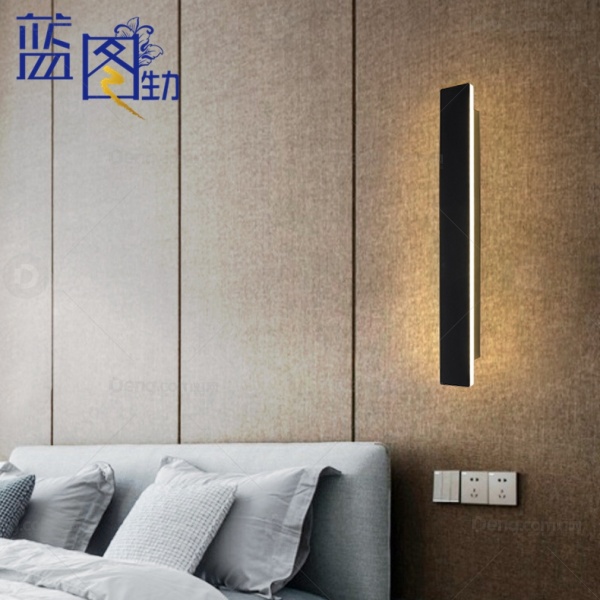 蓝图生力铁艺书房/卧室喷漆磨砂现代简约壁灯 头数:单头 型号:3023-线条平角-40CM-黑