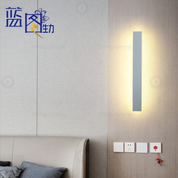蓝图生力铁艺书房/卧室喷漆磨砂现代简约壁灯 头数:单头 型号:3023-线条平角-60CM-白