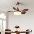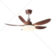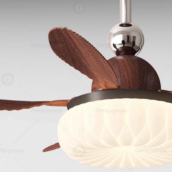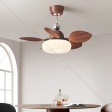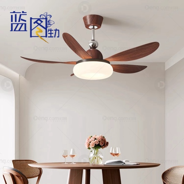 蓝图生力铁艺餐厅喷漆磨砂新中式风扇灯 头数:1头 型号:H-034-C款-小团圆-胡桃色-遥控+离线语音