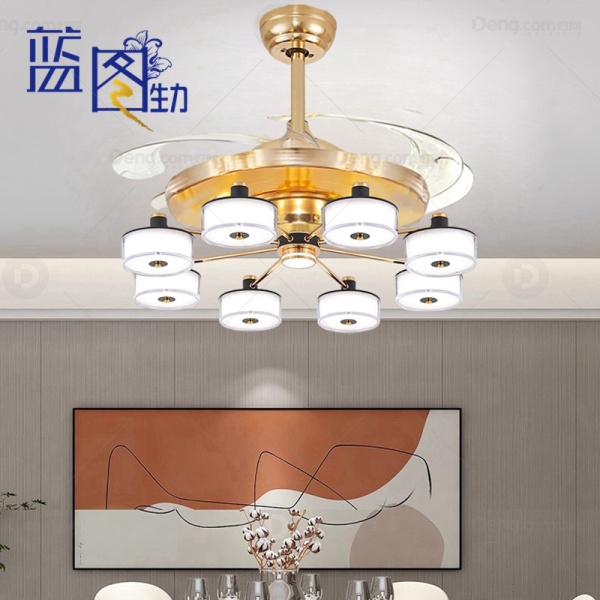 蓝图生力铁艺书房/卧室注塑北欧/宜家风扇灯 头数:8头 型号:H-035-8头-金色-42寸-遥控