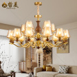 哲美铜高层/复式电镀中式吊灯 头数:18头 型号:LHY6824-18头假两层玻璃灯罩