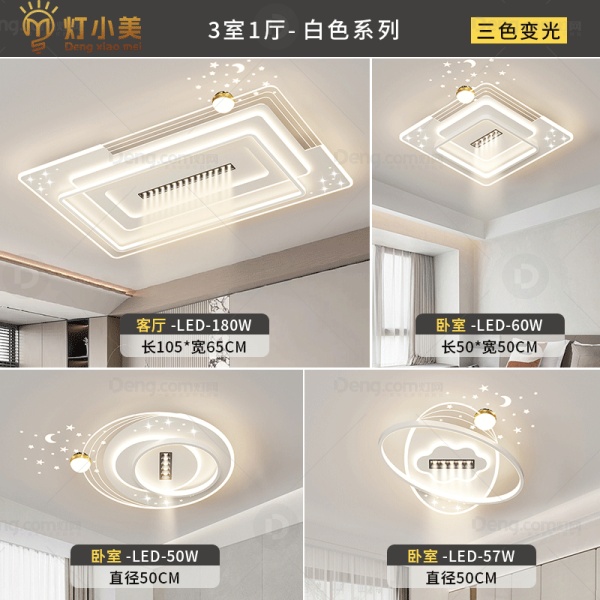 灯小美铁艺客厅现代简约套餐 型号:6001-白色套餐2三色光