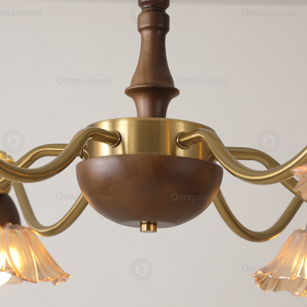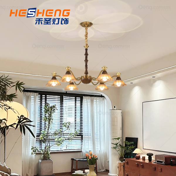 禾圣铁艺餐厅电镀中古风吊灯 头数:6头 型号:D995110/6-胡桃木色