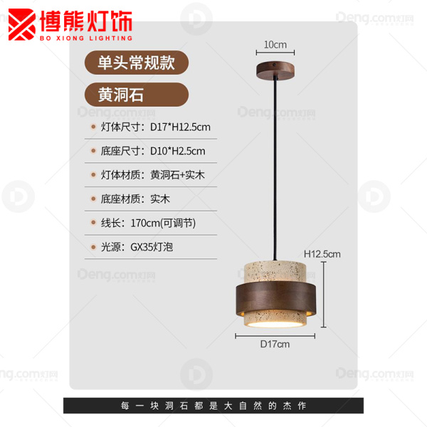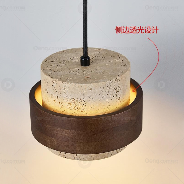 中古风复古侘寂风实木+黄洞石床头小吊灯