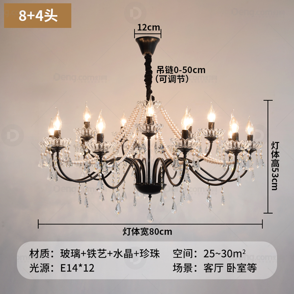 晶斯朗水晶客厅喷漆磨砂法式吊灯 头数:12头 型号:81092-8+4珍珠