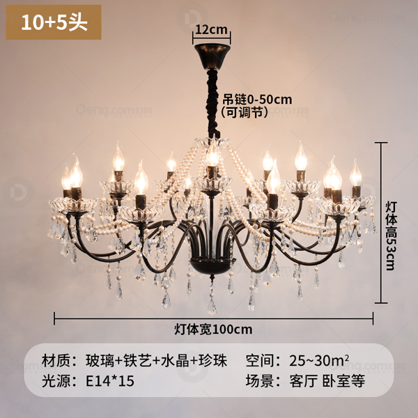 晶斯朗水晶客厅喷漆磨砂法式吊灯 头数:15头 型号:81092-10+5珍珠