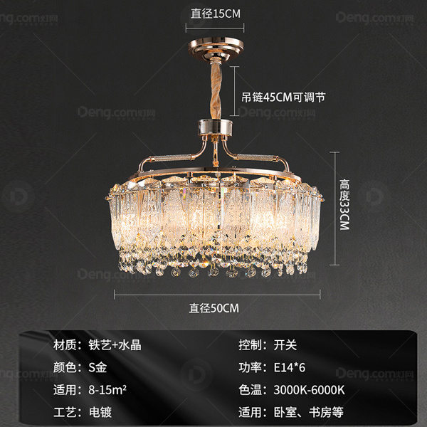 晶斯朗水晶书房/卧室电镀轻奢吊灯 头数:6头 型号:81106-50圆