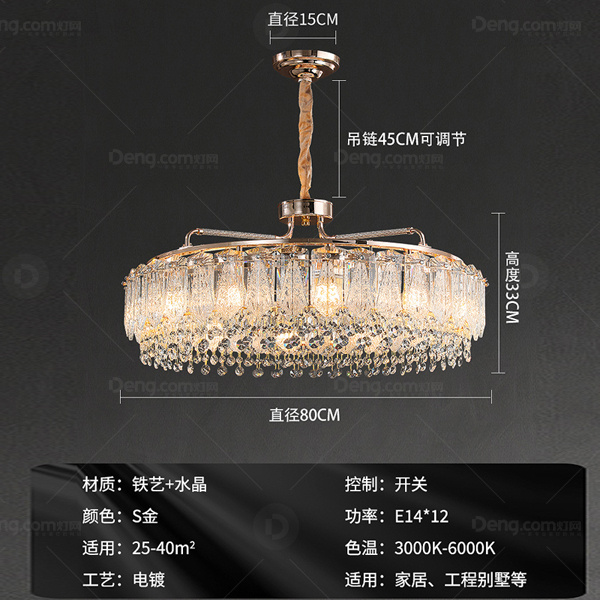 晶斯朗水晶客厅电镀轻奢吊灯 头数:12头 型号:81106-80圆