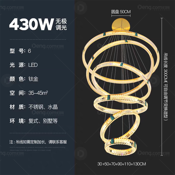 晶斯朗水晶高层/复式电镀轻奢吊灯 头数:6头 型号:80021六圈30+50+70+90+110+130