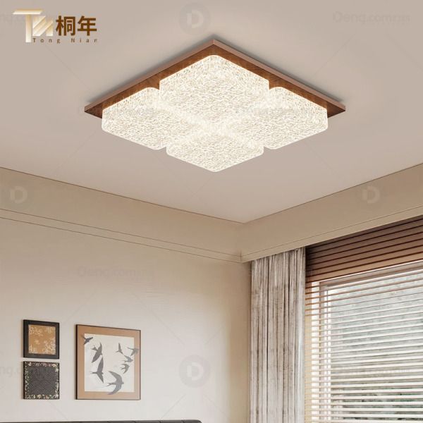 桐年铁艺书房/卧室喷漆磨砂中古风吸顶灯 型号:ZY6023/木纹色/三色分段
