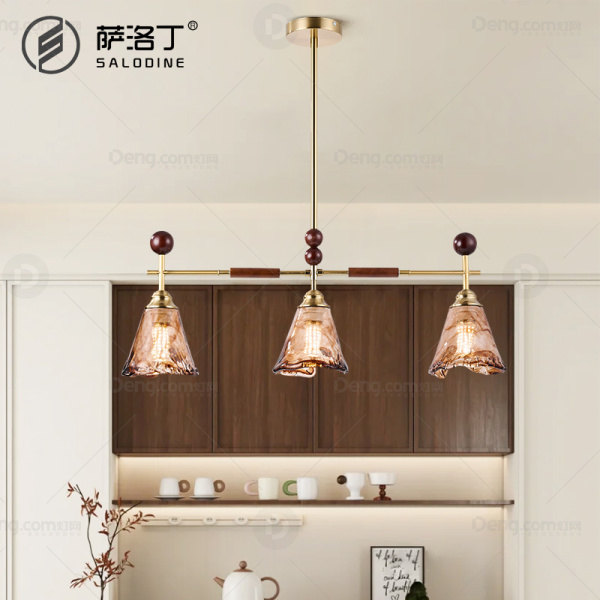 萨洛丁铁艺餐厅电镀中古风吊灯 头数:3头 型号:7521-A-3头(焦糖罩)