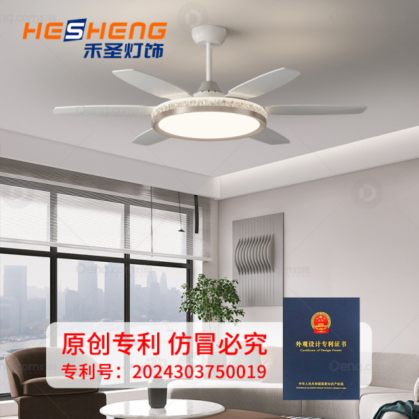 禾圣铁艺餐厅喷漆磨砂现代简约风扇灯 头数:1头 型号:F997507/D款-52寸-拉丝玫瑰金