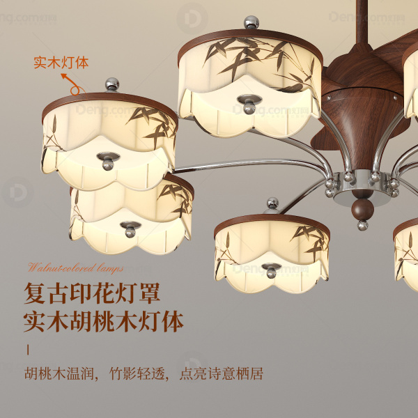 弦月铁艺书房/卧室喷漆磨砂宋式美学风扇灯 头数:3头 型号:QL-1108-3-FS28寸直叶吊