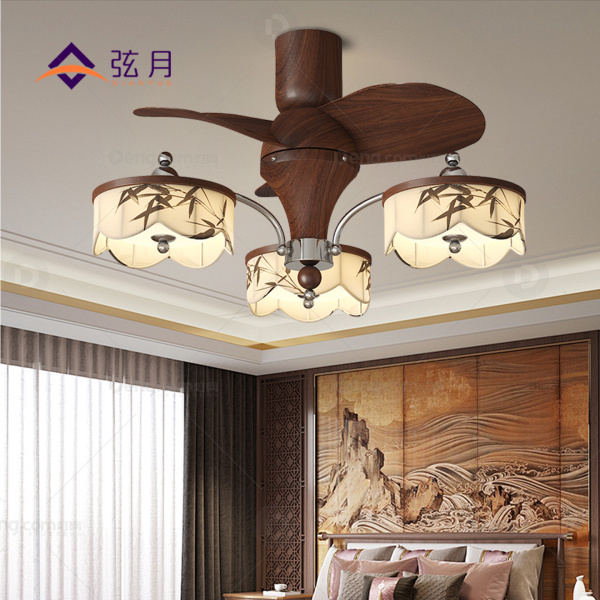 弦月铁艺书房/卧室喷漆磨砂宋式美学风扇灯 头数:3头 型号:QL-1108-3-FS28寸直叶吸
