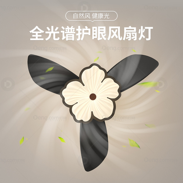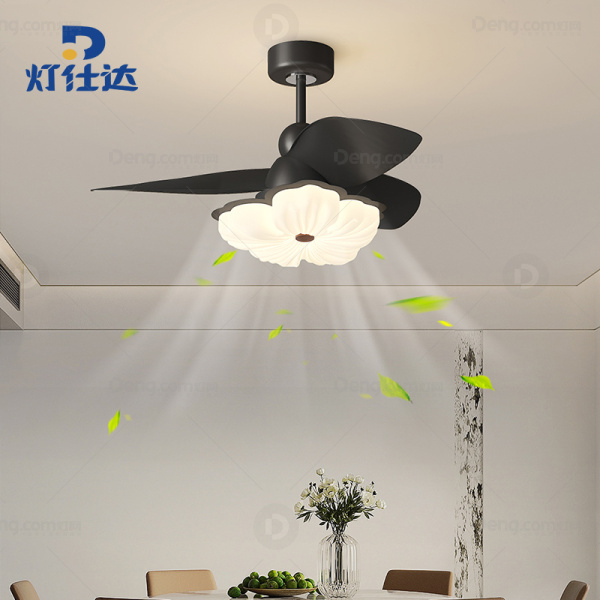 灯仕达铁艺书房/卧室喷漆磨砂奶油风风扇灯 头数:1头 型号:FS6004D-花朵-36寸-黑离线语音