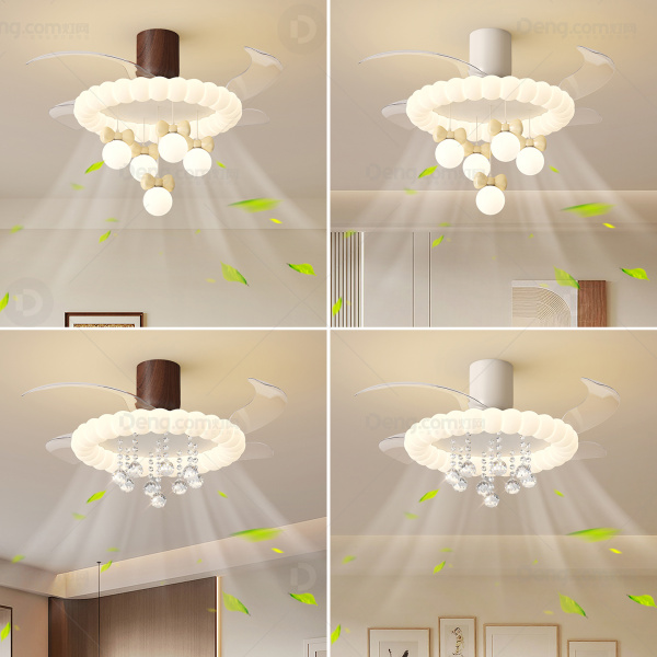 灯仕达铁艺书房/卧室喷漆磨砂奶油风风扇灯 头数:1头 型号:HM-FS8006-泡泡-36寸-水晶白色三色