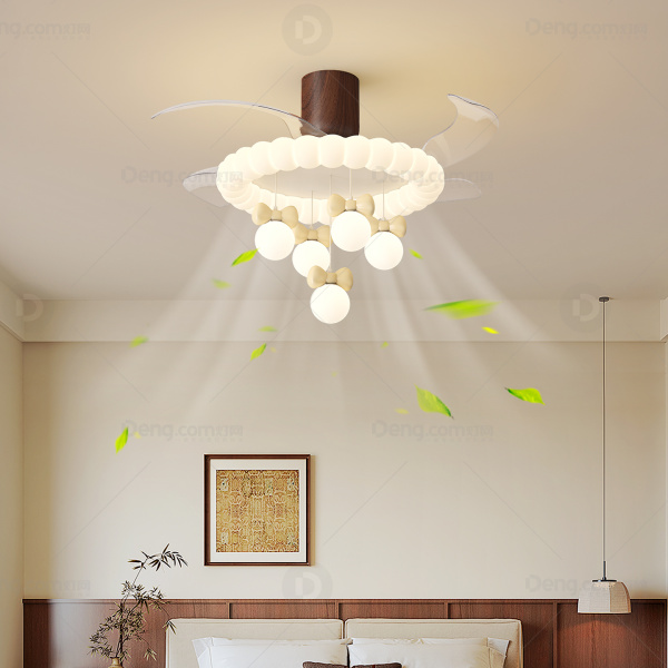 灯仕达铁艺书房/卧室喷漆磨砂奶油风风扇灯 头数:1头 型号:HM-FS8006-泡泡-36寸-蝴蝶结胡桃木色离线语音