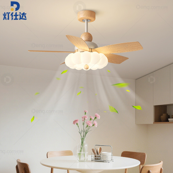 灯仕达铁艺书房/卧室其他/other奶油风风扇灯 头数:1头 型号:FS6008D-泡泡-42寸-原木色离线语音