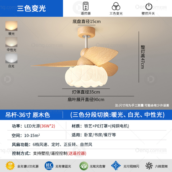 灯仕达铁艺书房/卧室其他/other奶油风风扇灯 头数:1头 型号:FS6006D-羽毛-36寸-原木色三色