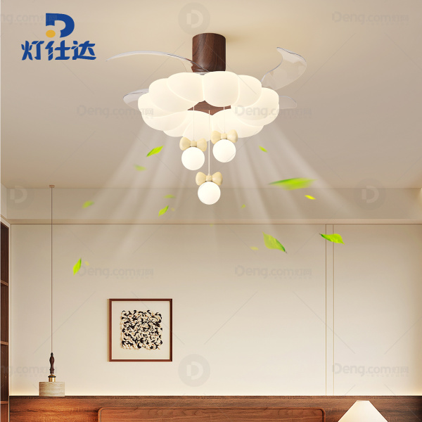灯仕达铁艺书房/卧室喷漆磨砂奶油风风扇灯 头数:1头 型号:FS8004-桃心吊球-36寸-胡桃木色离线语音
