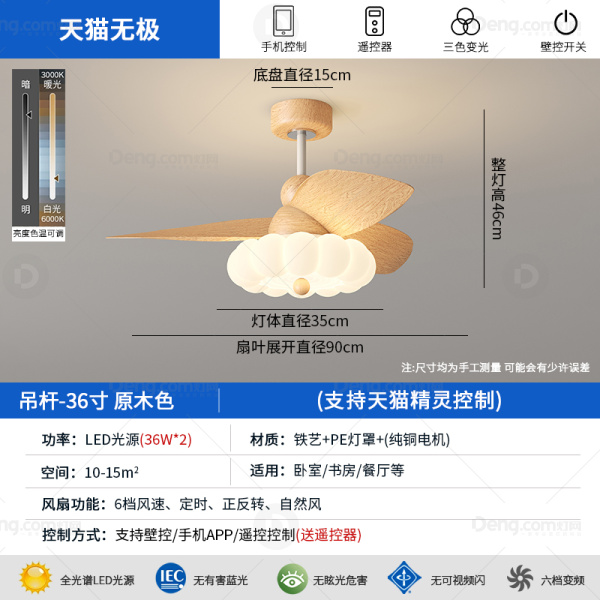 灯仕达铁艺书房/卧室其他/other奶油风风扇灯 头数:1头 型号:FS6005D-泡泡-36寸-原木色天猫