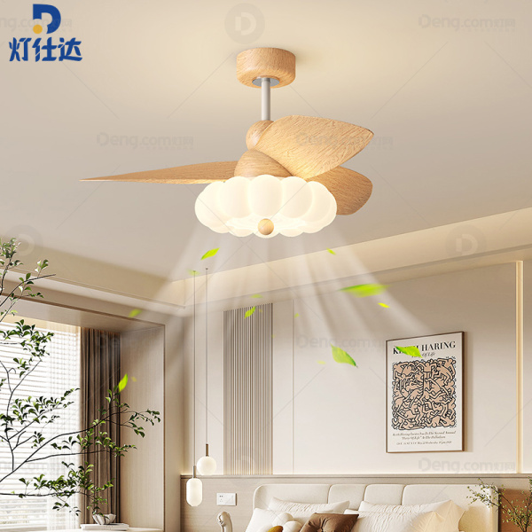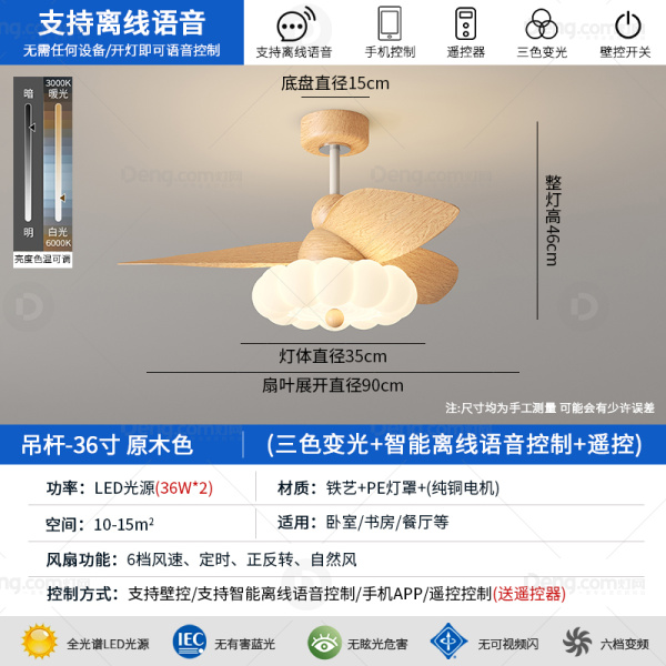 灯仕达铁艺书房/卧室其他/other奶油风风扇灯 头数:1头 型号:FS6005D-泡泡-36寸-原木色离线语音