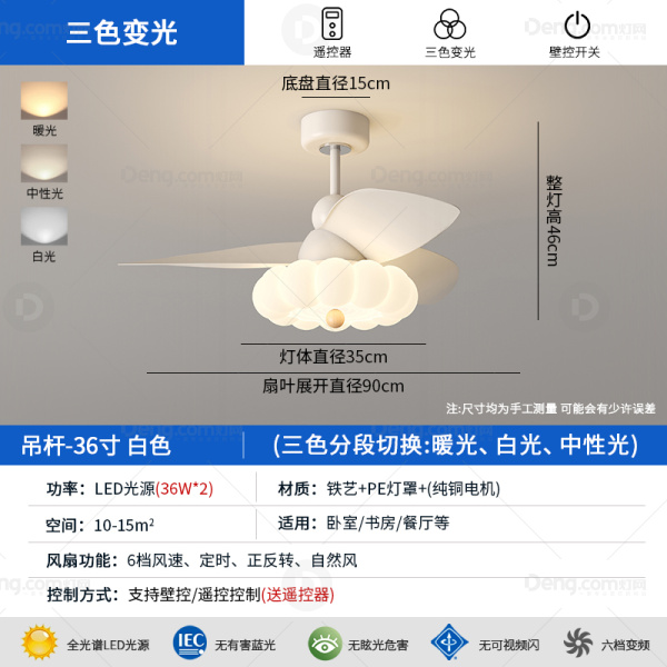 灯仕达铁艺书房/卧室其他/other奶油风风扇灯 头数:1头 型号:FS6005D-泡泡-36寸-白三色