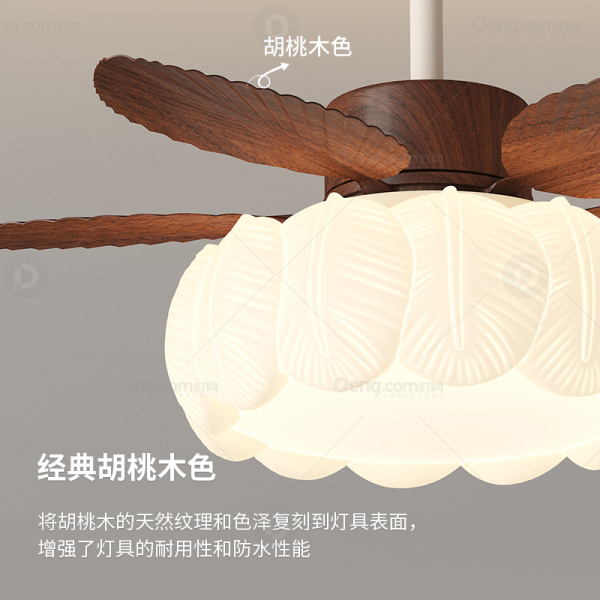 灯仕达铁艺书房/卧室其他/other奶油风风扇灯 头数:1头 型号:FS6003X-羽毛-28寸-胡桃木色离线语音