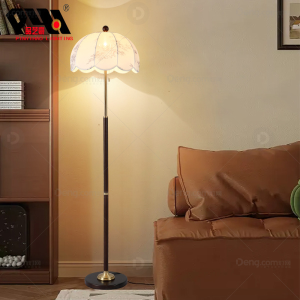 品艺豪实木客厅染色宋式美学落地灯 型号:PYH2216-1F黑花