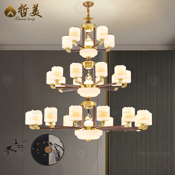 哲美铜别墅/酒店大堂染色新中式吊灯 头数:24头以上 型号:YX8086-30头