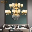 新中式 吊灯 翻砂全铜灯臂 大玉石发光中柱底锅灯罩
