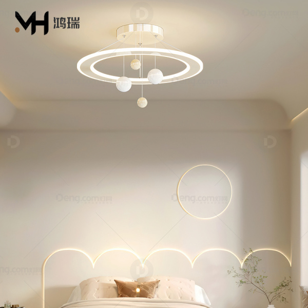鸿瑞灯饰铁艺书房/卧室喷漆磨砂北欧/宜家吸顶灯 型号:YS-6049-奶油色-全光谱天猫无极