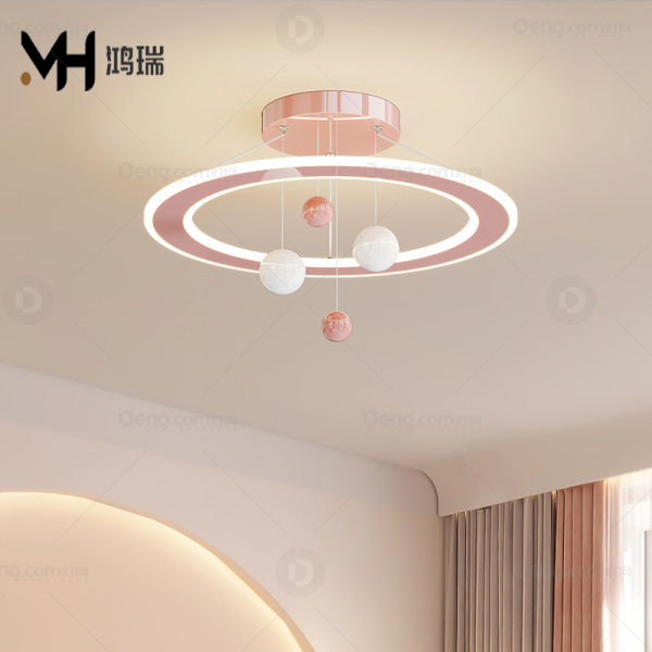 鸿瑞灯饰铁艺书房/卧室喷漆磨砂北欧/宜家吸顶灯 型号:YS-6049-粉色-全光谱智能助手