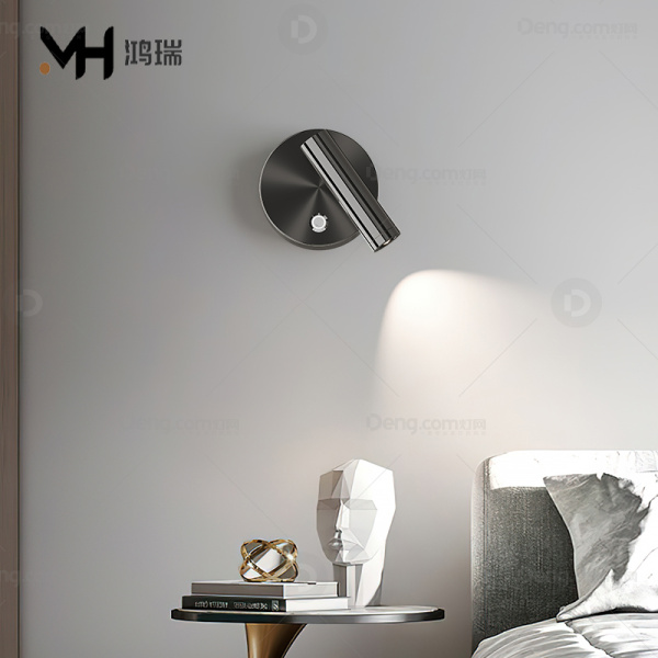 鸿瑞灯饰铝材书房/卧室电镀现代简约壁灯 头数:单头 型号:HJ-8002-电镀珍珠黑-普瑞三色