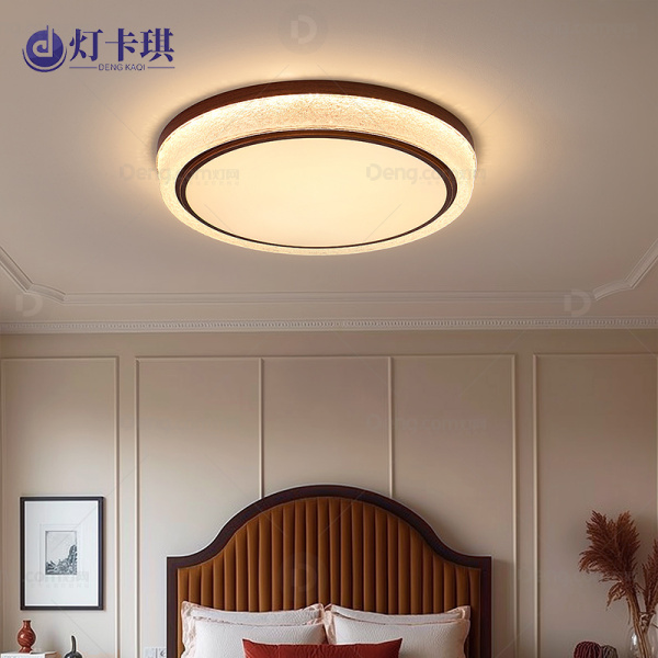 灯卡琪铁艺书房/卧室喷漆磨砂中古风吸顶灯 型号:3965圆/胡桃木色/三色变光