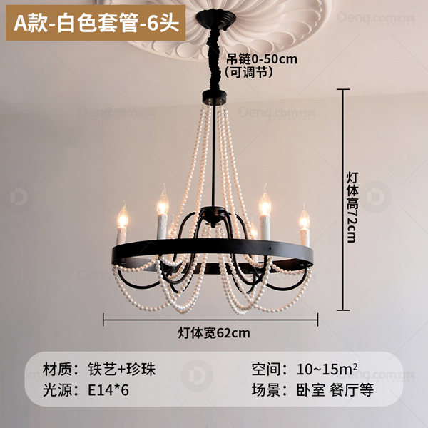 晶斯朗铁艺书房/卧室喷漆磨砂法式吊灯 头数:6头 型号:81175-6A款白色