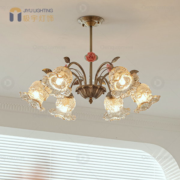极宇铁艺书房/卧室其他/other法式吊灯 头数:6头 型号:JY32107吊灯-6头葫芦花(法式田园风复古美式)