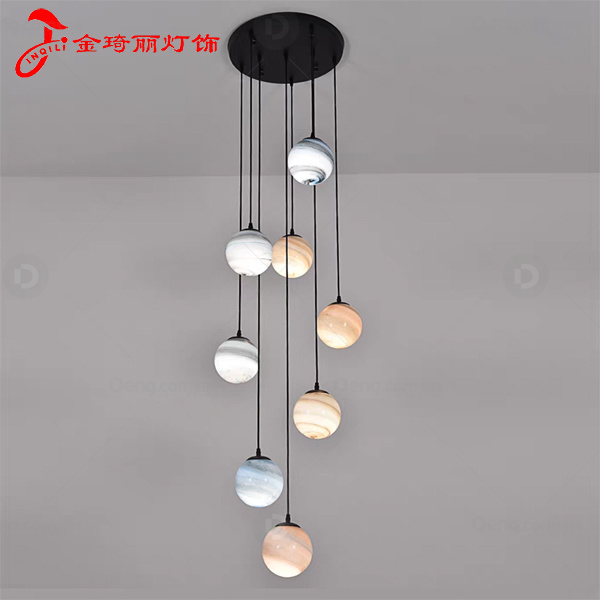 金琦丽玻璃楼梯/拐角喷漆磨砂北欧/宜家吊灯 头数:8头 型号:21457-8头黑色