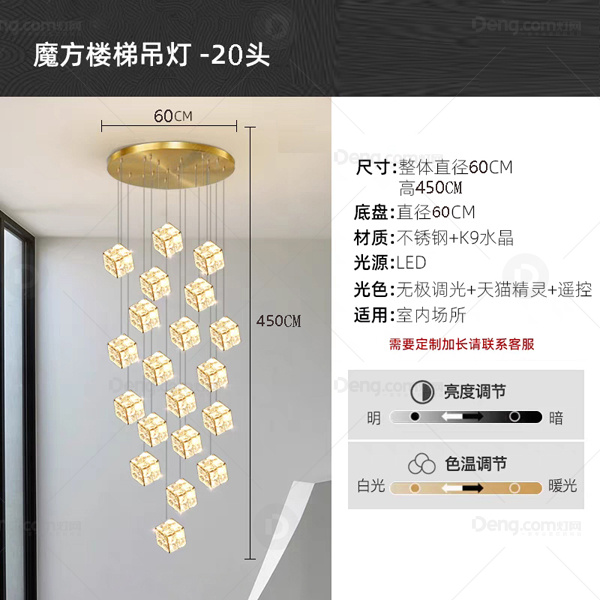 金琦丽水晶楼梯/拐角电镀轻奢吊灯 头数:20头 型号:20861-20头