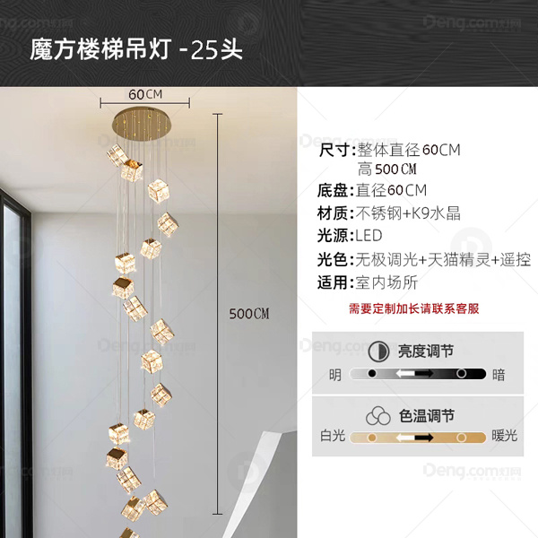 金琦丽水晶楼梯/拐角电镀轻奢吊灯 头数:24头以上 型号:20861-25头